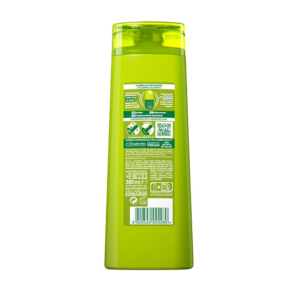 SHAMPOO caspa. Champú purificante anti-caspa de Garnier Fructis. Su fórmula avanzada integra activos que actúan directamente sobre el exceso de sebo en el cuero cabelludo con tendencia grasa. Proporciona una limpieza profunda y fresca, eliminando las escamas visibles y contribuyendo a evitar su reaparición. El cabello se percibe saludable, lleno de brillo y con un movimiento natural. Diseñado especialmente para quienes presentan el cabello con grasa.
