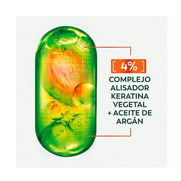 Su fórmula enriquecida con [COMPLEJO ALISADOR DE KERATINA VEGETAL + ACEITE DE ARGÁN] suaviza y disciplina el cabello al instante.