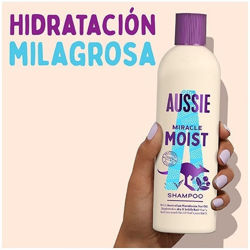 Descubre la línea Miracle Moist. Rehidrata tu pelo con el Champú Hydrate de Aussie. Este champú hidratante de Aussie nutre intensamente el cabello muy seco gracias al aceite de nuez de macadamia australiana.