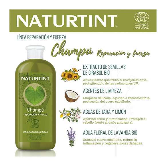 Elaborado con un 99,2% de ingredientes naturales que aportan hidratación, fuerza y vitalidad al cabello.