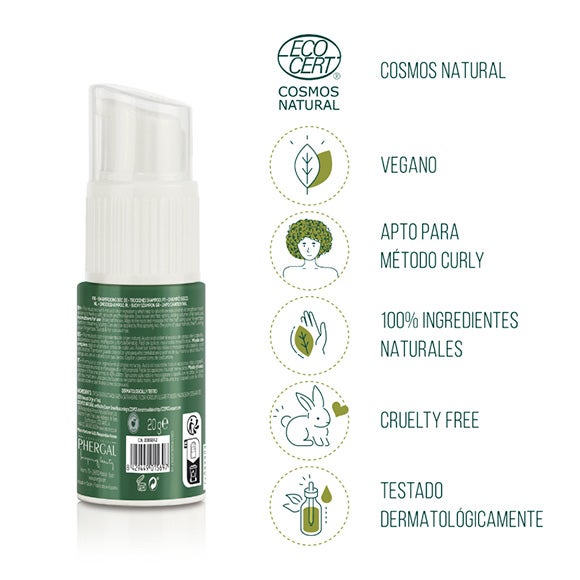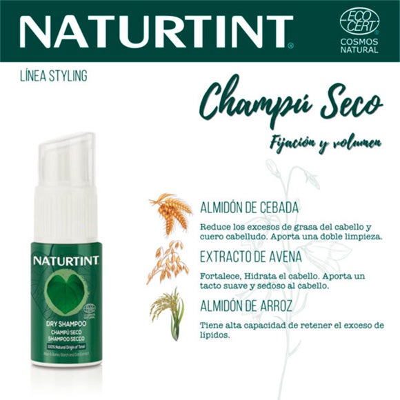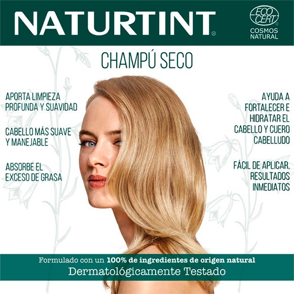 Champú seco con Certificación Ecocert, creado con una formulación compuesta por 100% ingredientes de origen natural.