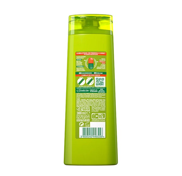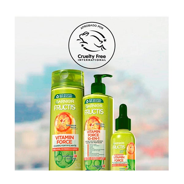 Garnier Fructis Vitamin Force Champú combina Naranja Roja, Vitamina C y Biotina para revitalizar el cabello con propensión a la caída. Refuerza la fibra capilar desde la raíz hasta las puntas y ayuda a disminuir la pérdida de cabello ocasionada por la rotura.