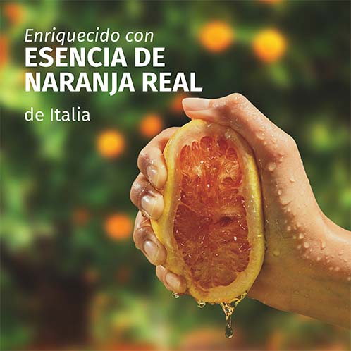 FÓRMULA CON INGREDIENTES DE ORIGEN* NATURAL EN UN 97% Elaborada con esencia de naranja y limón italianos. Producto vegano, sin siliconas y no testado en animales.