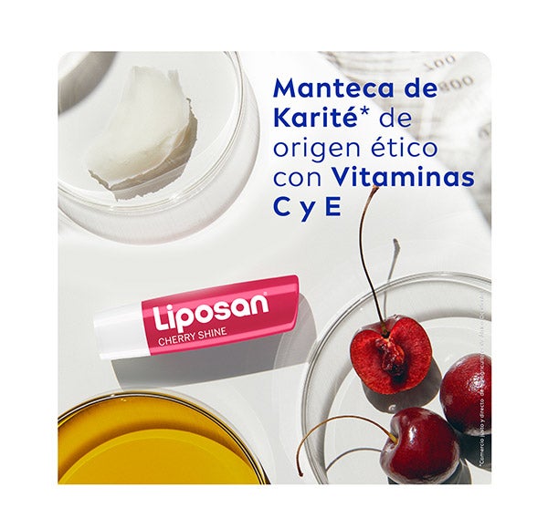 El bálsamo labial Liposan Cereza cuida y embellece tus labios con un exquisito aroma a cereza y un ligero destello rojo. Su composición especial, con pigmentos luminosos, se integra al momento y conserva los labios hidratados hasta por 24h*. Aplícalo de forma suave y pareja sobre los labios, ¡sin necesidad de espejo!
