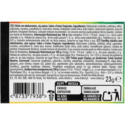 Trident Senses Chicle sin azúcar, con edulcorantes. Sabor a frutas tropicales. 23gr