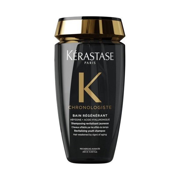 El Baño Regenerador de Kérastase es un champú revitalizante y restaurador enriquecido con ácido hialurónico y abyssine, diseñado para tratar el cabello que muestra signos de envejecimiento capilar, falta de hidratación, pérdida de brillo, encrespamiento y ausencia de densidad o cuerpo.