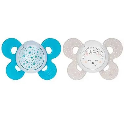 Los chupetes Chicco cuentan con una tetina ortodóntica Activa que favorece el correcto desarrollo de la boca del bebé durante los primeros meses. La forma de su tetina facilita una posición adecuada de la lengua y hace que la presión de la lengua se distribuya uniformemente sobre el paladar. Además, la base extra fina de la tetina facilita un correcto cierre de la boca del bebé durante la utilización de chupetes.
