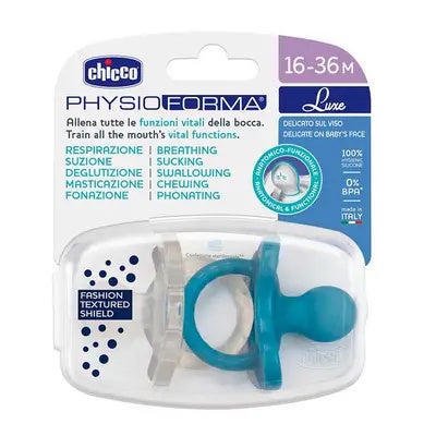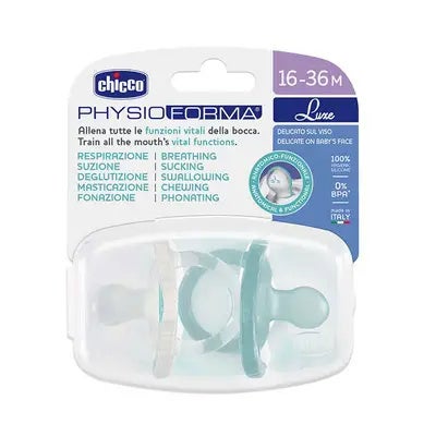 Descubre el Chupete Physioforma LUXE 16-36m+ de Chicco, diseñado para proporcionar comodidad y cuidado durante el día y la noche para bebés de 16 a 36 meses.