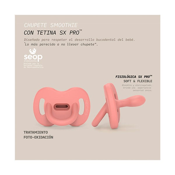 La Tetina Suavinex SX Pro cuenta con el aval de la Sociedad Española de Odontopediatría (SEOP). El chupete incorpora un tratamiento de Foto-Oxidación que reduce la adhesión de pelusas y partículas de suciedad, favoreciendo la higiene.