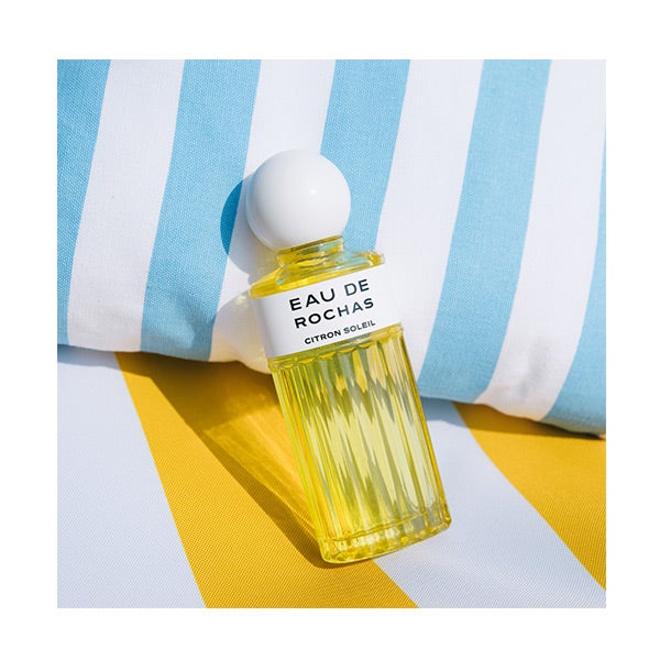 Eau de Rochas Citron Soleil surge con el propósito de evocar la atmósfera de la Riviera Mediterránea, donde los extensos campos de limoneros impregnan el aire con un delicado y cítrico frescor.
