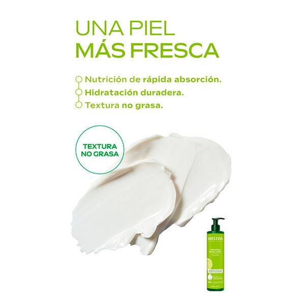 Enriquecida con aloe vera orgánico, extracto natural de limón y ácido hialurónico, esta leche corporal brinda hasta un +98 % de hidratación inmediata* desde la primera aplicación. Su textura ultraligera se funde rápidamente con la piel sin dejar residuos grasos, garantizando una nutrición intensa por 24 h**. El frescor se percibe de forma instantánea y su aroma cítrico despierta los sentidos.