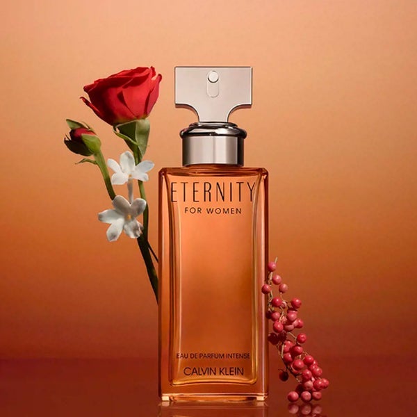 Como una potente manifestación de amor sin fin, Calvin Klein ETERNITY Eau de Parfum Intense para mujer es una composición floral especiada inspirada en la pasión de un encuentro amoroso bajo la luz del atardecer.