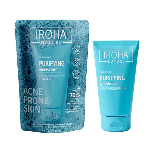 Limpiador Purificante Antiimperfecciones de Iroha Nature es un gel delicado que limpia los poros a fondo sin causar irritación, eliminando el exceso de sebo y las células muertas acumuladas. De este modo, los poros se perciben más cerrados y se minimizan los puntos negros y las imperfecciones. Su fórmula concentrada y de eficacia probada, testada dermatológicamente, se convierte en una espuma densa y rica al contacto con el agua caliente, asegurando una limpieza profunda sin resecar ni dejar sensación grasa. Además, restaura el equilibrio del pH y evita la tirantez y la sequedad.