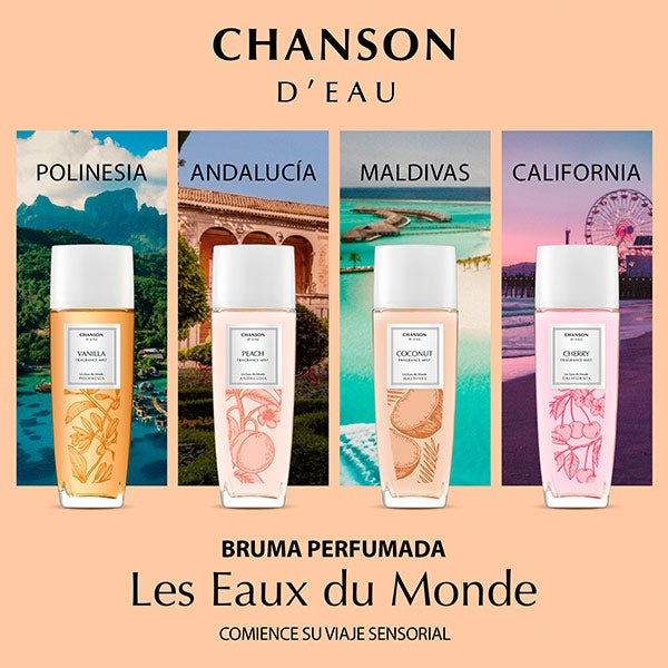 Las fragancias Les Eaux Du Monde de Chanson d'Eau, ligeras y llenas de vitalidad, se han creado para perfumar tanto el cuerpo como el cabello.
