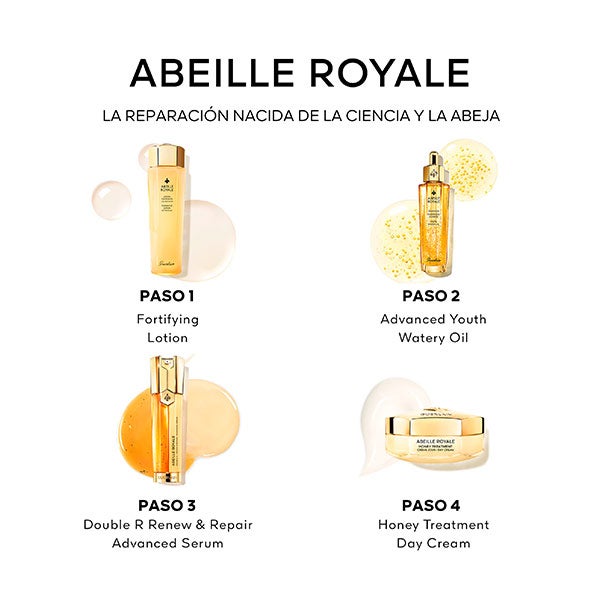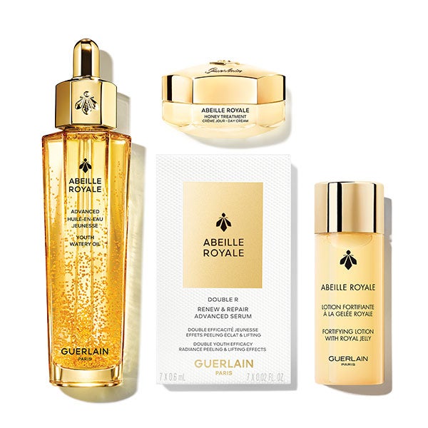 El Aceite Acuoso de Juventud Avanzado junto con tres tratamientos complementarios se presentan en un cofre que ofrece un ritual de juventud intensificado por las propiedades reparadoras de la miel.