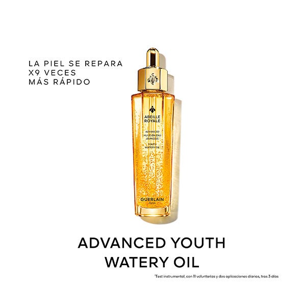 El Aceite Acuoso de Juventud Avanzado reúne los activos apícolas más eficaces seleccionados por la Investigación Guerlain para lograr una reparación hasta 9 veces más rápida¹. La piel recupera densidad y una apariencia notablemente más joven. Su textura ligera y no grasa está compuesta por un 95 % de ingredientes de origen natural².