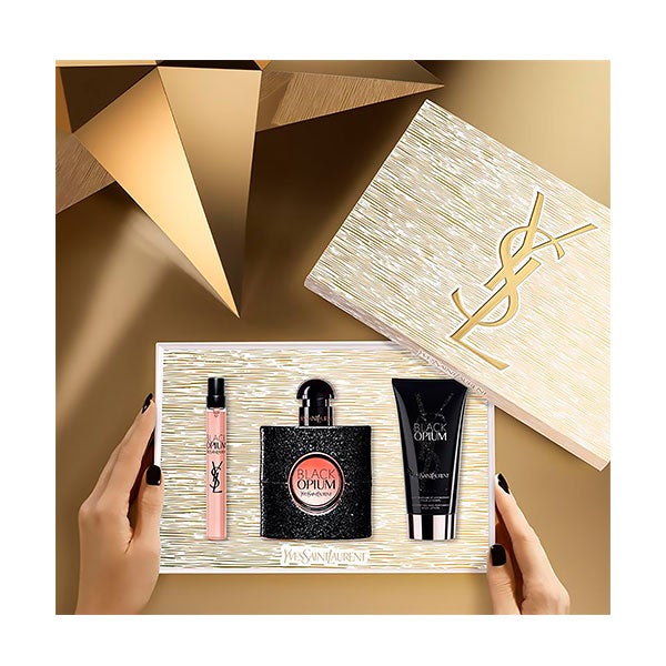 Vive una Navidad llena de elegancia con el Cofre Black Opium de Yves Saint Laurent, una edición limitada que reúne la fragancia y el cuidado corporal en una presentación de lujo. Incluye Black Opium Eau de Parfum 50 ml, tamaño de viaje 10 ml y Body Lotion 50 ml.
