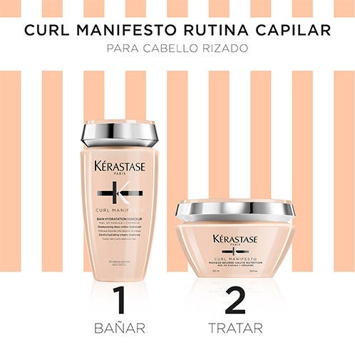 Paso 2 - Masque Beurre Haute Nutrition: Extiende una cantidad generosa sobre el cabello húmedo. Distribuye de manera uniforme mientras desenredas con los dedos o un peine de púas anchas. Añade un poco de agua para emulsionar, deja actuar entre 5 y 30 minutos y enjuaga con abundancia.