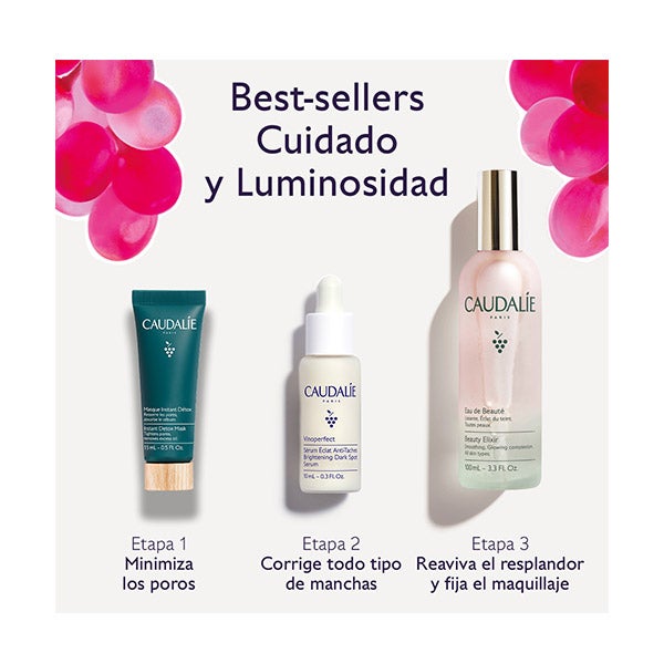 Producto icónico de Caudalie, esta bruma 100 % natural con múltiples beneficios revitaliza la luminosidad del rostro, suaviza la textura de la piel al disminuir los poros y ayuda a fijar el maquillaje.