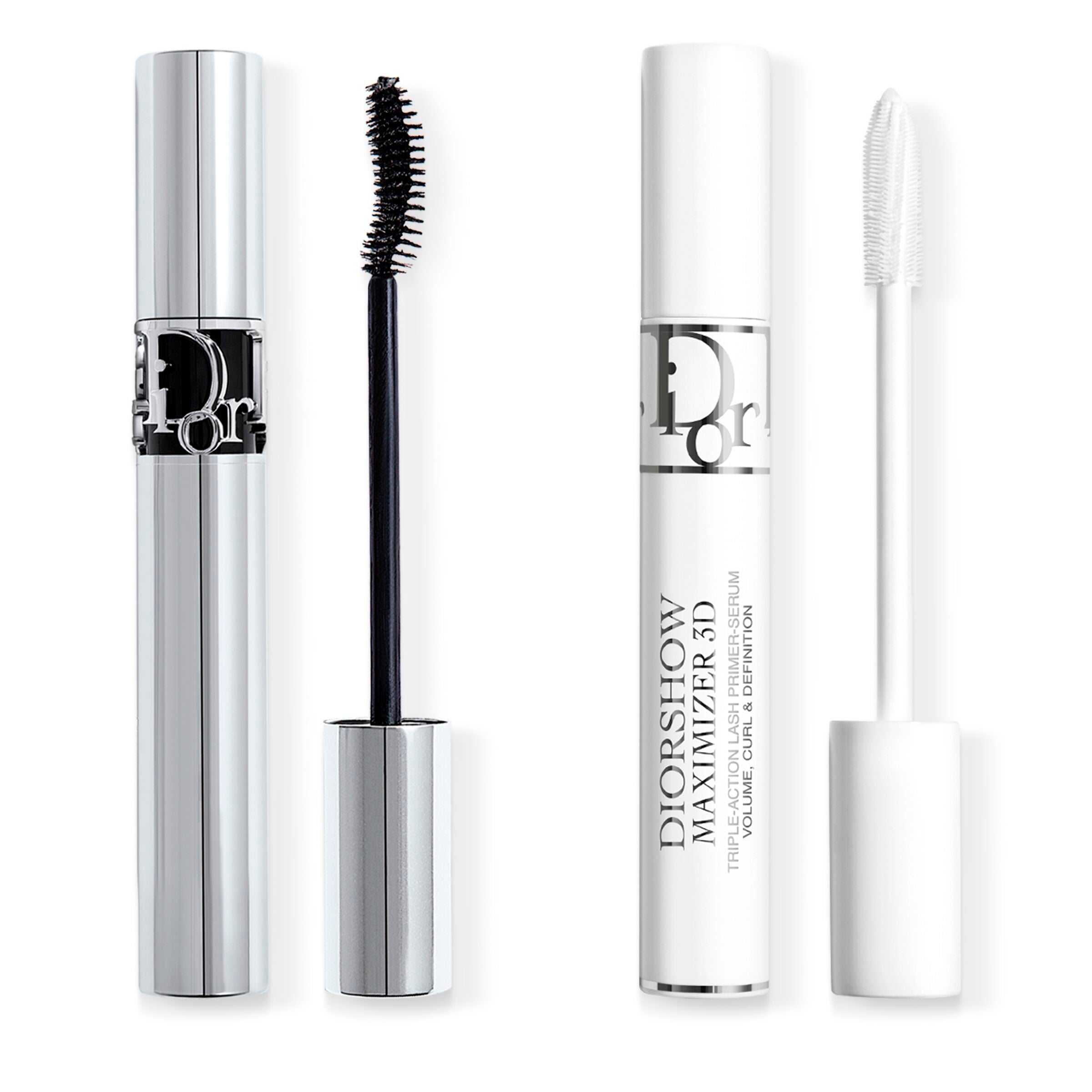 - El primer-sérum de máscara Diorshow Maximizer 3D en tamaño de venta. Un tratamiento para pestañas de 24 horas* de duración, que se aplica antes de la máscara para ofrecer una triple acción de volumen, curvatura y definición.
