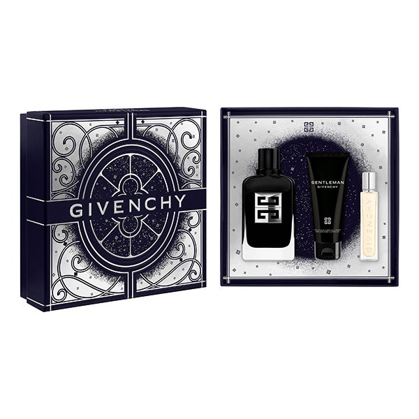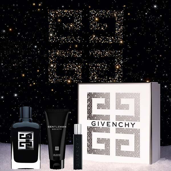Durante esta época navideña, Givenchy te abre las puertas a su universo de ensueño: una versión diminuta de su Hôtel Particulier transformada en un encantador set de obsequio. Sorprende regalando lo inusual con este estuche de fragancias masculinas que incluye un Gentleman Society Eau de Parfum, un gel de ducha y un vaporizador recargable para llevar contigo.