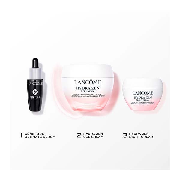 HYDRA ZEN GEL CREMA 50ml - HYDRA ZEN CREMA NOCHE 15ml - SÉRUM GÉNIFIQUE ULTIMATE 10ml.