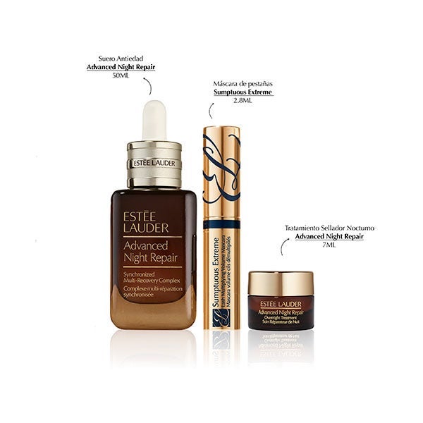 ESTÉE LAUDER presenta una edición limitada del estuche Advanced Night Repair, que incluye una minitalla de la Máscara de Pestañas Sumptuous Extreme y otra del Tratamiento Sellador Nocturno. Con un valor estimado de 177€.