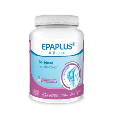 EPAPLUS Arthicare Colágeno + ácido Hialurónico es un complemento alimenticio diseñado para cuidar tus articulaciones y mantenerlas en óptimas condiciones. A medida que envejecemos, la producción natural de colágeno en nuestro cuerpo disminuye, lo que puede llevar a molestias articulares y problemas de movilidad. Este producto está formulado con colágeno hidrolizado, una proteína esencial para la salud de los huesos y los músculos, junto con ácido hialurónico, conocido por su capacidad para lubricar las articulaciones y mejorar su flexibilidad.