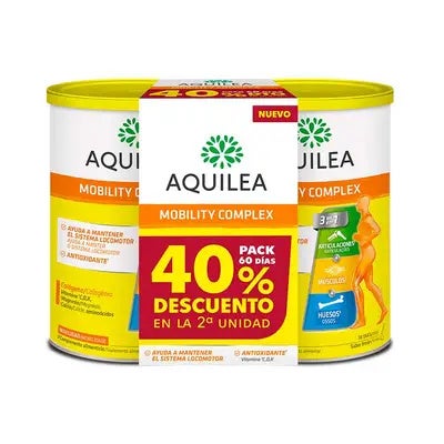 Aquilea Colágeno+Magnesio combina Colágeno, Ácido hialurónico, Magnesio y Vitamina C, elementos que favorecen la correcta formación del colágeno necesario para el funcionamiento habitual del cartílago, contribuyendo así al confort y movilidad articular.
