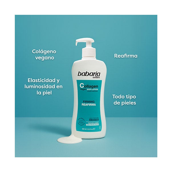 La loción corporal Babaria Body Active con colágeno ha sido diseñada para tonificar y reafirmar la piel, ofreciendo una hidratación intensa mediante una textura ligera y de absorción rápida. Su práctico envase de 400 ml con dosificador permite una aplicación cómoda en el uso diario.
