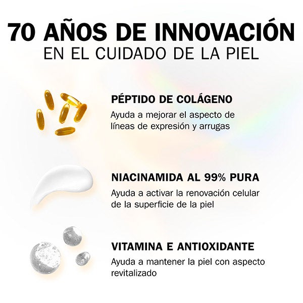 En combinación con la vitamina B3, esta fórmula actúa de forma inmediata proporcionando una hidratación profunda durante 24 horas y, con el uso constante, mejora la textura y refuerza la barrera protectora para una piel más firme y radiante.