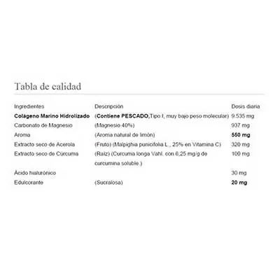 - Enriquecido con Magnesio y Vitamina C: Collmar® con Magnesio sabor Limón aporta el 100% de la Cantidad Diaria Recomendada de estos dos nutrientes.El Magnesio y la Vitamina C, además de sus numerosas propiedades, están relacionados con la síntesis de proteínas.