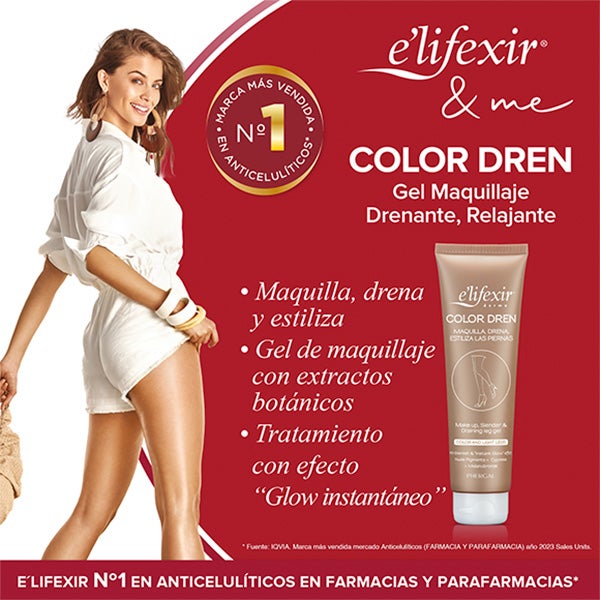 Con E´lifexir® Color Dren disfrutarás de unas piernas doradas, radiantes y homogéneas con un acabado medio y veraniego al instante.