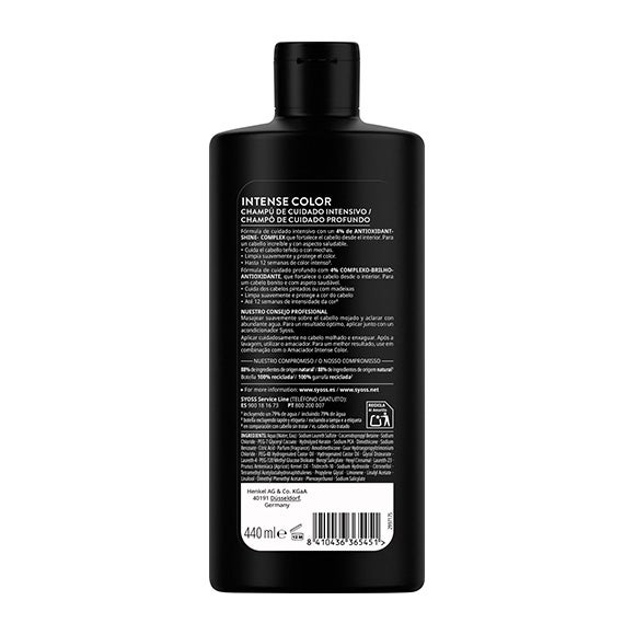 El Champú Color Syoss está diseñado para el cuidado del cabello teñido, aclarado o con mechas. Su tecnología selladora del color ayuda a preservar y proteger la intensidad del tono, manteniéndolo brillante por más tiempo. Garantiza hasta 12 semanas con un efecto anti-apagamiento, mientras sella y resguarda los pigmentos de color. Incluye filtro UVA/UVB.