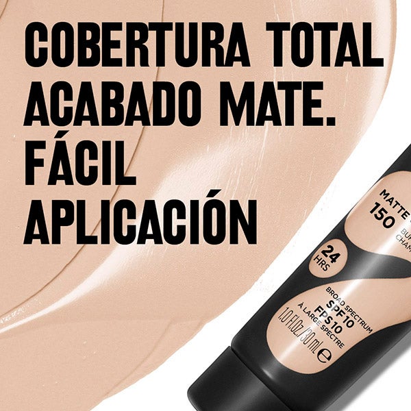 Base de maquillaje con textura cremosa tipo mousse, que ofrece cobertura total y un acabado completamente mate.