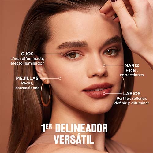 En el rostro: Define, mezcla, da toques de luz, crea pecas o refuerza contornos sin reglas ni límites.