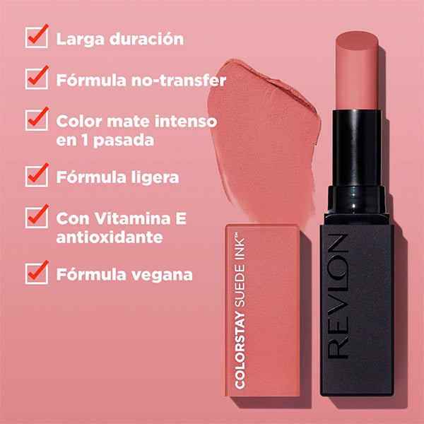 Su tecnología no-transfer ofrece un color mate de gran intensidad que se mantiene perfecto hasta por 8 horas.