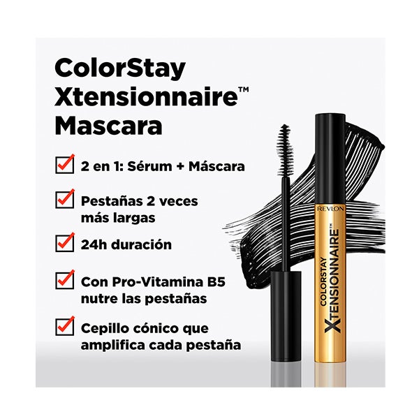 La Máscara de Pestañas Colorstay Xtensionnaire de Revlon lleva tus pestañas al extremo: logra pestañas el doble de largas.