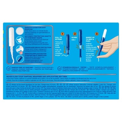 Su aplicador compacto de plástico suave con punta redondeada permite una inserción más cómoda y precisa, mientras que el agarre antideslizante con relieve facilita su uso incluso en los días más difíciles. Gracias a su tecnología MotionFit, el tampón se expande de forma natural para adaptarse a la anatomía femenina, ofreciendo una protección ajustada y eficaz.