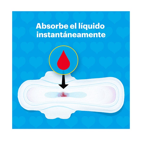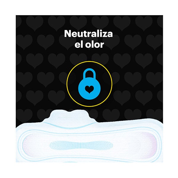 Su exclusivo sistema dual con Perlas Activas neutraliza los olores hasta un 0 % y retiene el flujo menstrual, permitiendo que te sientas completamente limpia.