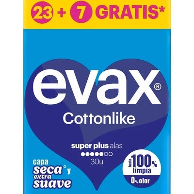 Evax Cottonlike Compresas Super Plus con alas – 30 unidades
