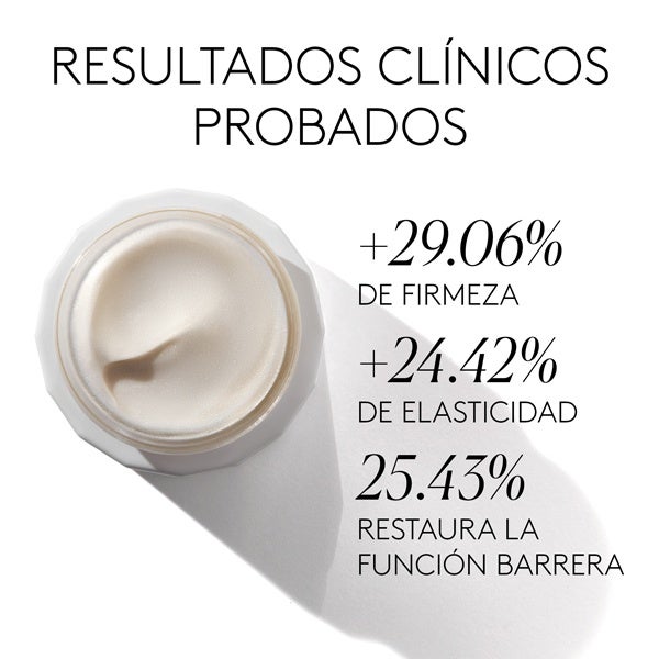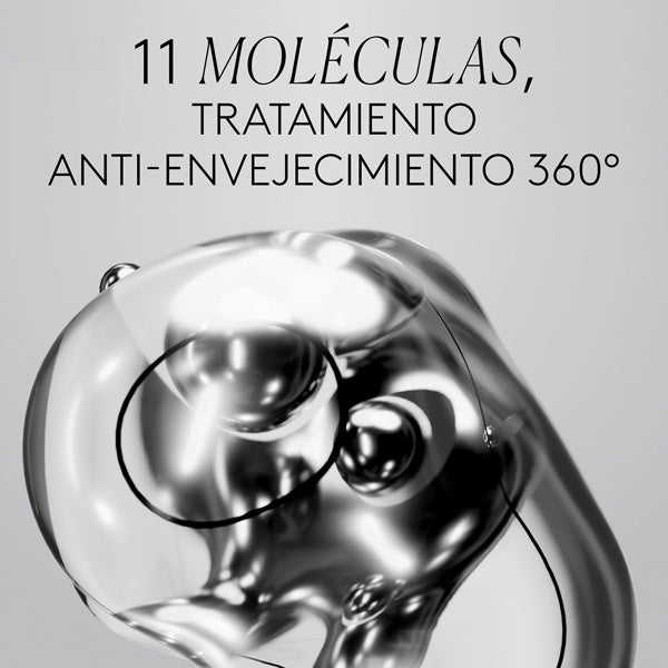 Su exclusiva Terapia Molecular incorpora 11 moléculas activas que optimizan la comunicación celular de la piel, abordando los 5 principales factores del envejecimiento: arrugas, luminosidad, manchas, textura y pérdida de firmeza.