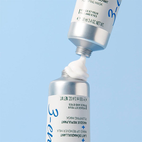 Ríndete al placer de una hidratación exquisita. ¡Tres cuidados reunidos en un solo envase! Disfruta de este tratamiento versátil que combina crema hidratante de 48 h*, leche desmaquillante y mascarilla redensificante.