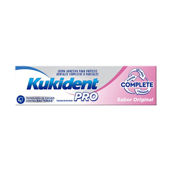 La crema adhesiva para prótesis dentales Kukident Pro Complete es la elección ideal si desea despreocuparse por su prótesis.