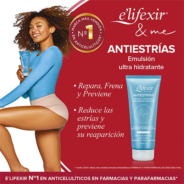 Mima tu cuerpo y resalta tu belleza. Elifexir, la marca más vendida del mercado de anticelulíticos (Farmacia y Parafarmacia) en 2022 según ventas en unidades. Fuente: IQVIA.