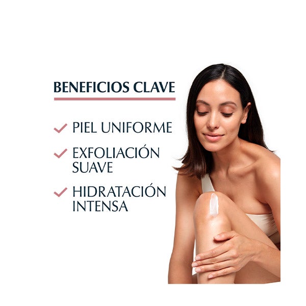 Suave acción exfoliante para una piel lisa y flexible: Contiene Ácido Láctico, que promueve una exfoliación delicada, y Dexpantenol, que favorece la regeneración de la piel.