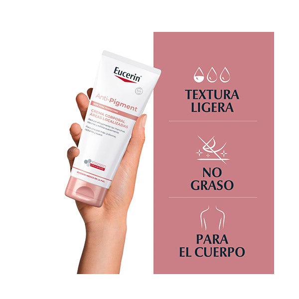 La crema corporal Antipigment de Eucerin es una innovadora fórmula que atenúa visiblemente las manchas oscuras localizadas, ofreciendo una piel más uniforme, luminosa y aterciopelada.