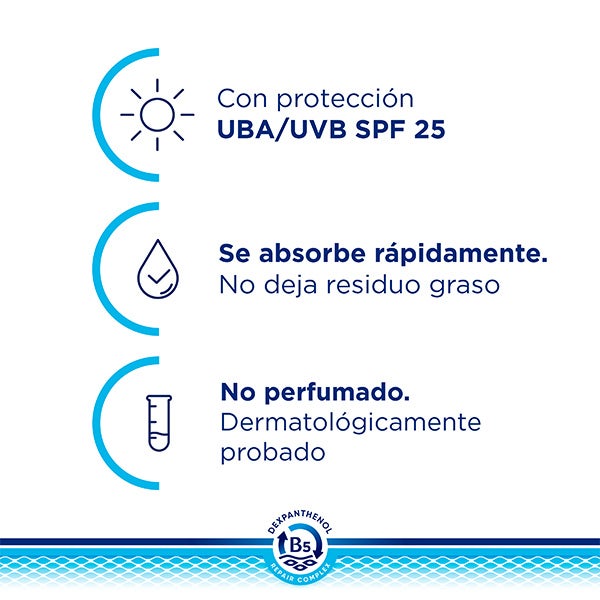 Bepanthol® Derma Crema Facial Diaria Nutritiva SPF25 es un tratamiento hidratante de textura ligera y rápida absorción que proporciona una hidratación intensa y prolongada hasta por 48 horas.
