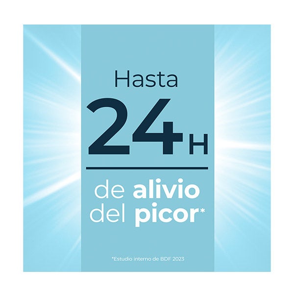 Su fórmula integra un complejo excepcional de activos que combina el calmante licocalcón A, el decanediol y el mentoxipropanediol (MPD), con acción refrescante y efecto antipicor.