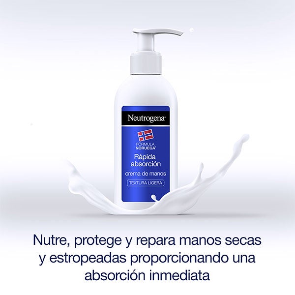 La Crema de Manos Rápida Absorción de Neutrogena es una loción ligera que hidrata, protege y restaura las manos secas o dañadas, ofreciendo una absorción casi instantánea.